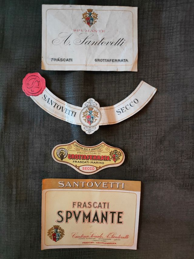 4 Etichette vino Santovetti anni '60/'70 castelli romani Grottaferrata Frascati Marino