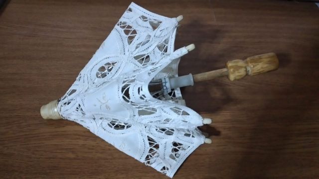 Ombrellino decorativo vintage, cm 16 lunghezza misurato chiuso, veramente particolare, in tessuto ricamato, appena lavato