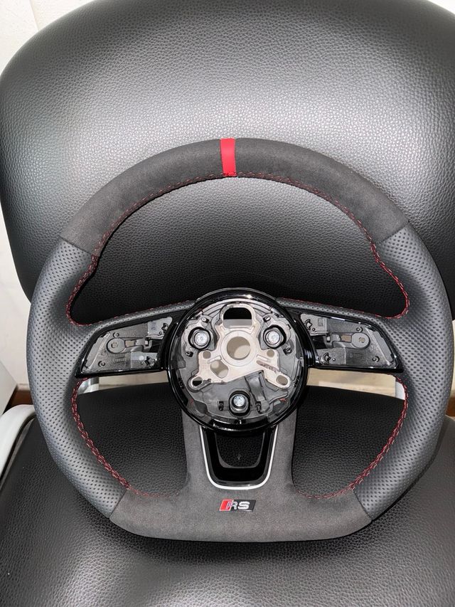 Volante Per Audi A3 S3 RS3 A4 S4 RS4 A5 S5 RS5 in Alcantara e pelle traforata con mirino rosso. Predisposizione Paddle(Inclusa cornice nero lucido).