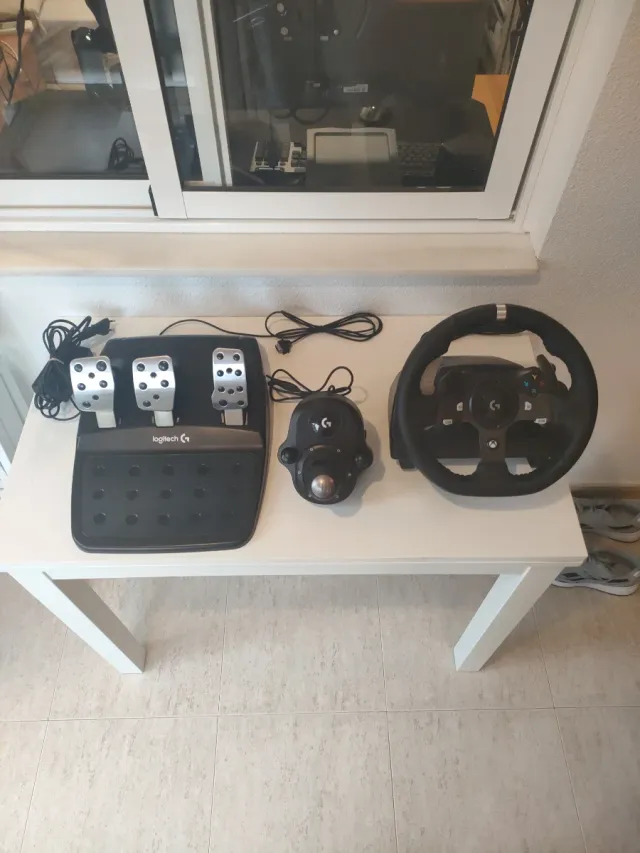 Dettagli del prodottoVolante da corsa Logitech G920 compatibile con PC, Xbox One e Xbox Series X/S. Include pedali e leva del cambio. - Volante con rivestimento in pelle. - Pedali di acceleratore, freno e frizione. - Leva del cambio. - Base con sistema di montaggio. - Non ho la confezione originale, ma un imballaggio con plastica imbottita di alta qualità per la spedizione. La descrizione è stata tradotta automaticamente.