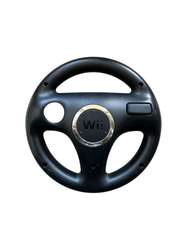 Volante nero per Nintendo Wii. - Design a tre razze. - Pulsante B posizionato sul lato destro. - Logo Wii al centro.