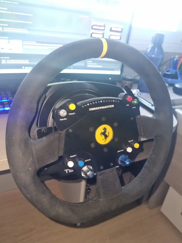 Dettagli del prodottoVolante da corsa Thrustmaster TSPC Racer, edizione Ferrari 488. Design sportivo con finitura in pelle scamosciata. Base con licenza ufficiale Ferrari. Pulsanti e quadranti personalizzabili. Include scatola originale. La descrizione è stata tradotta automaticamente.