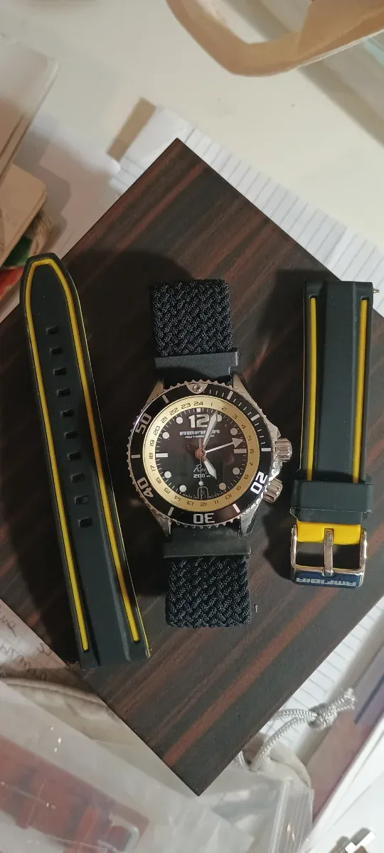 - Cinturino in tessuto nero e cinturino in gomma giallo/nero con fibbia originale Vostok amfibia