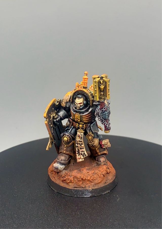 Miniatura de Warhammer 40,000, un Chaplain en armadura Terminator. - Figura detallada. - Base escénica incluida.