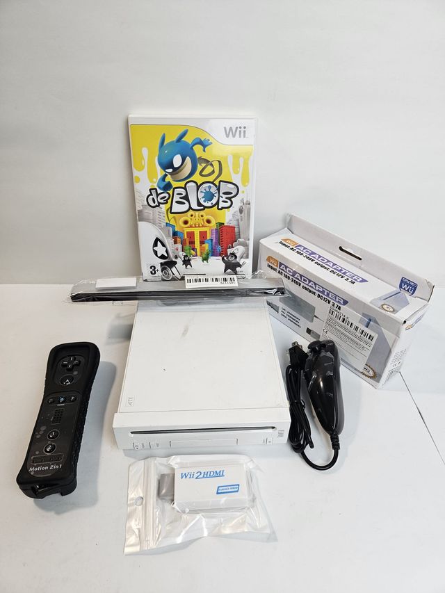 Dettagli del prodottoNintendo Wii completa Bianca retrocompatibile GameCube + Controller Originale con nunchuk + accessori + Gioco Da Blob completo di libretto