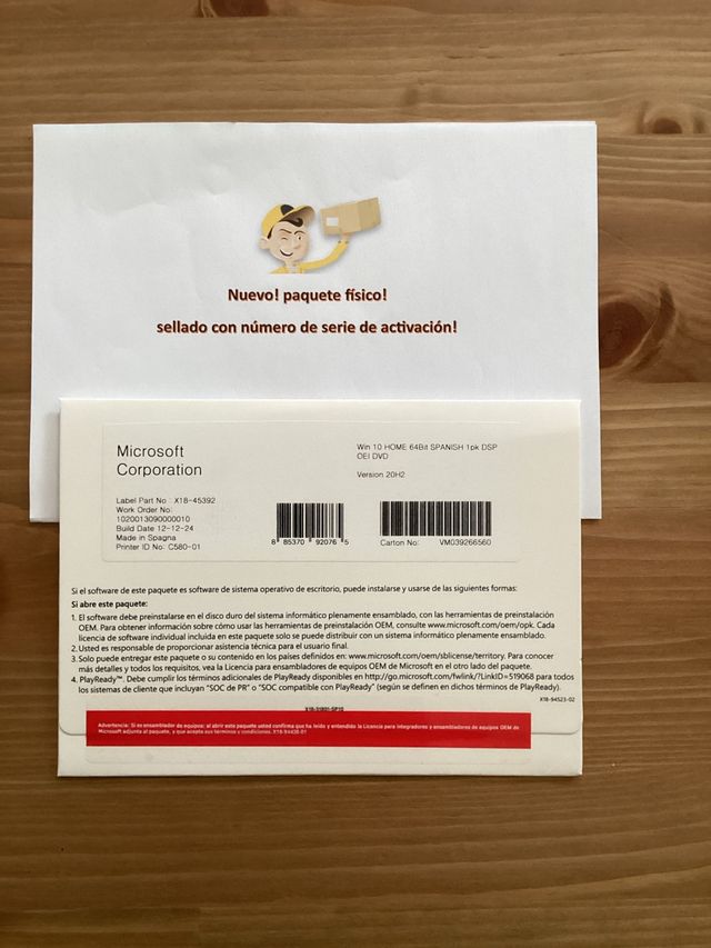 Pacchetto software Windows 10 Home in spagnolo. - Versione 64 bit. - Edizione DSP OEI DVD. - Versione 20H2.