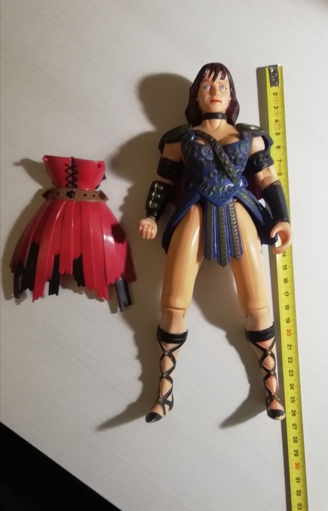 Dettagli del prodottoPersonaggio/statuina/bambola Xena principessa guerriera, del 1996, altezza cm. 25. Condizioni come in foto, il personaggio ha un vestito intero e un altro a metà, come si vede dalla prima foto.