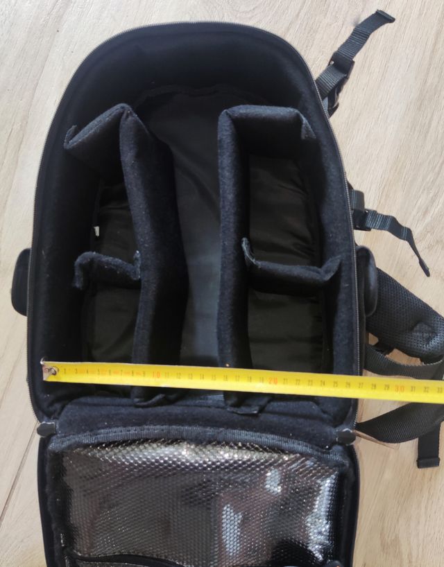 L'interno, realizzato in poliestere/nylon di colore nero, dispone di 9 scomparti per riporre e proteggere l'attrezzatura
