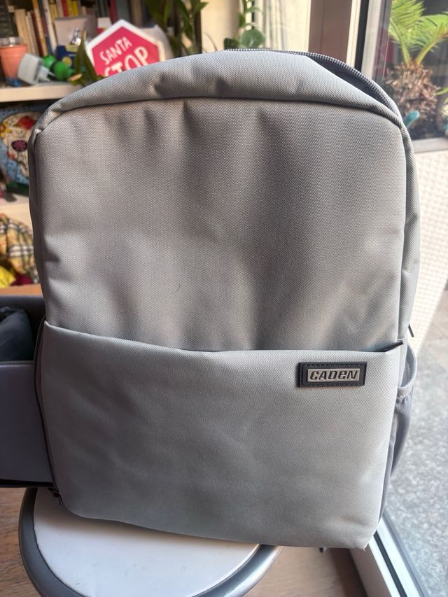 Zaino fotografico CADEN di colore grigio. - Design moderno e funzionale. - Materiale resistente. - Logo CADEN sul davanti.