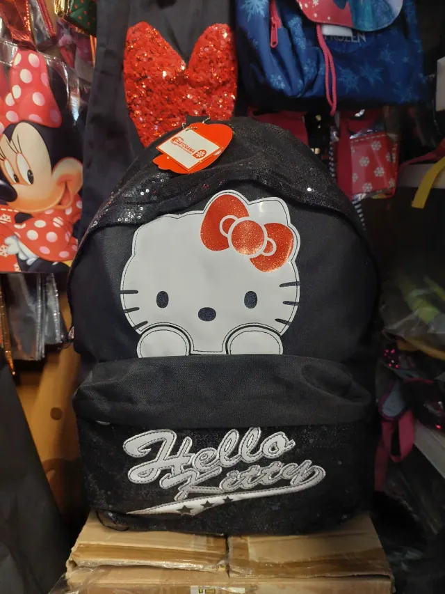 Zaino nuovo con licenza Hello Kitty, perfetto per la scuola o il tempo libero. - Colore nero. - Dettagli con paillettes scintillanti. - Immagine di Hello Kitty sul davanti.