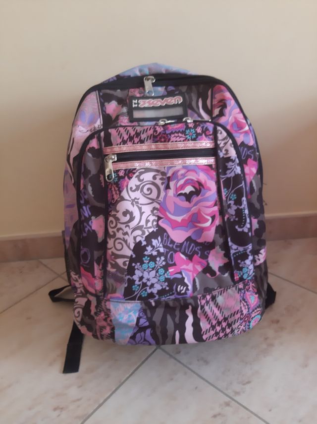 Dettagli del prodottoBellissimo zaino per la scuola del marchio Seven, con fantasie floreali e colori vivaci. Perfetto per studenti delle scuole medie o superiori.