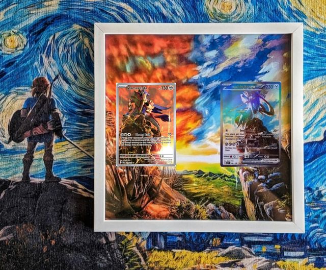 Dettagli del prodottoCornice Pokémon 20×20 cm in legno bianco o nero, da tavolo o da parete, con grafica estesa per Zamazenta (sv10 107) e carta custom di Zacian inclusa. Un display elegante e bilanciato per la tua collezione.