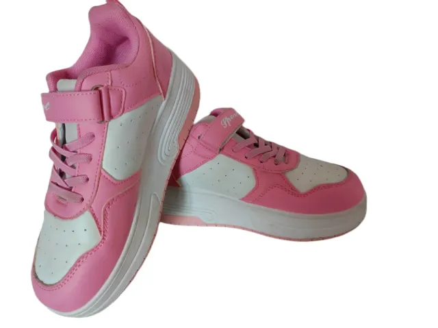 Dettagli del prodottoSneakers sportive con ruote in rosa e bianco. Usate un paio di volte. Chiusura con velcro e lacci. Design sportivo. La descrizione è stata tradotta automaticamente.