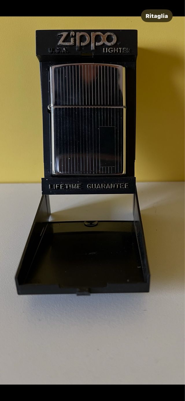 Zippo modello 350 con finitura Engine Turned. Mai usato. Con scatola originale. - Finitura metallica lucida. - Design classico Zippo. - Lifetime Guarantee inciso.