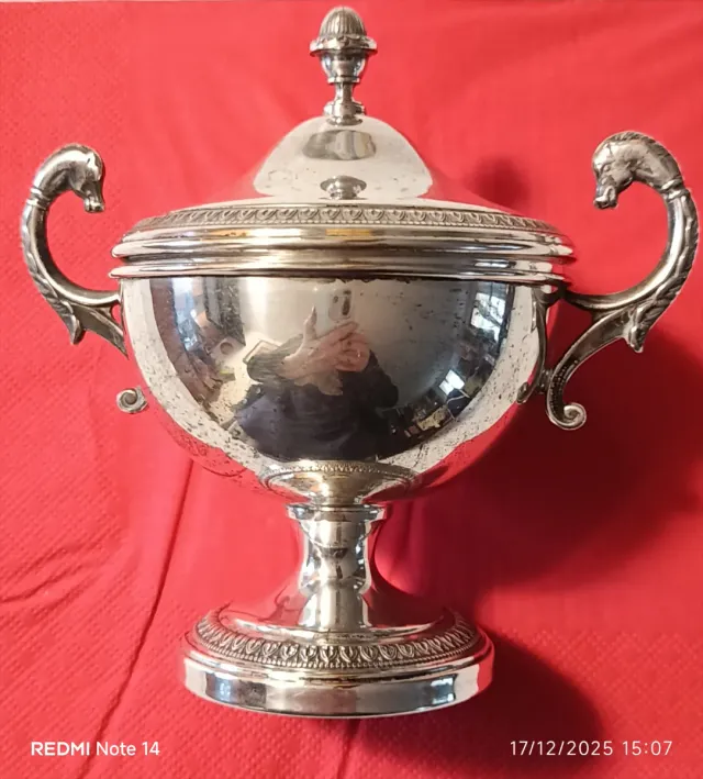 Dettagli del prodottoElegante zuccheriera in argento 800, un pezzo raffinato per la tua tavola.