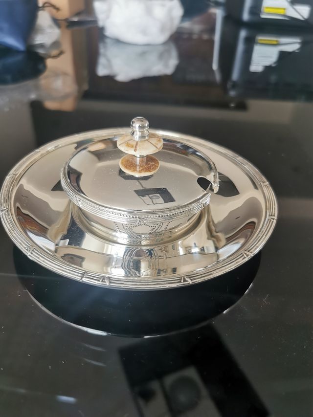 Dettagli del prodottoZuccheriera in sheffield placcato in argento diametro piattino cm15 diametro zuccheriera cm9 composta da tre pezzi. Nuovo prezzo di realizzo per chiusura di attività.