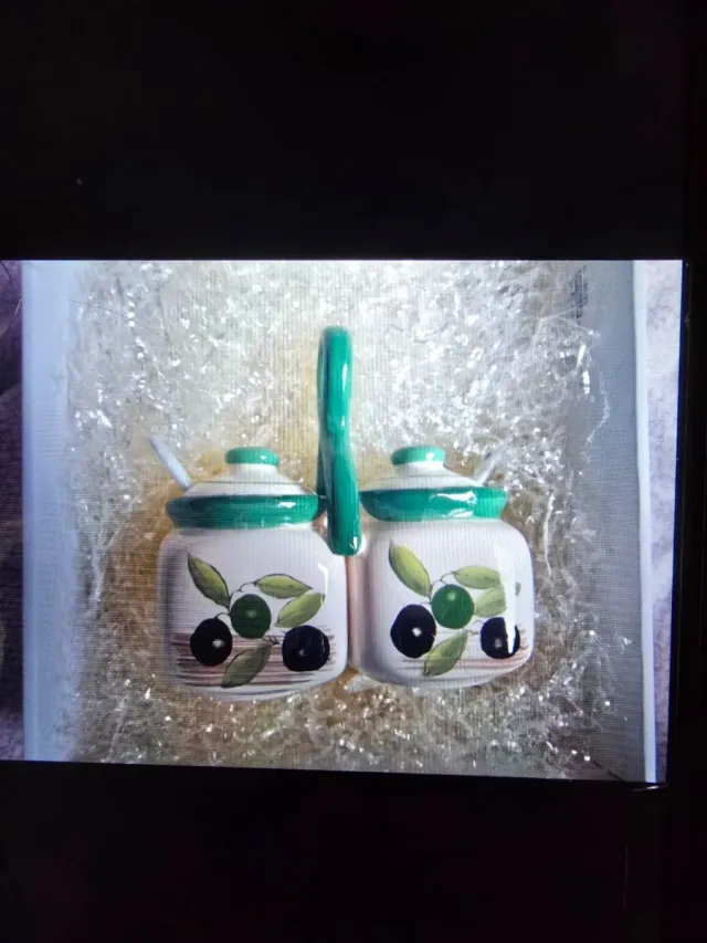 Zuccheriera/Saliera Ceramica Decorata Olive
