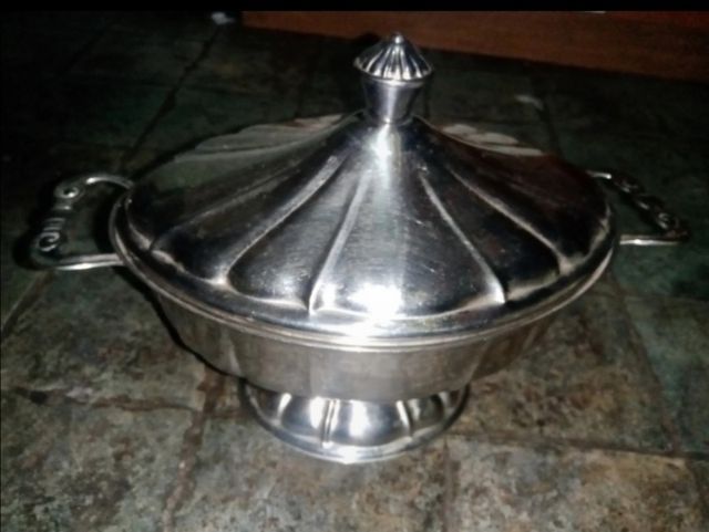 ZUPPIERA CENTROTAVOLA ANTICA IN ACCIAIO INOX CON COPERCHIO EURO 7
