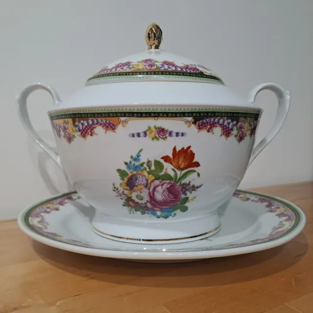 Dettagli del prodottoElegante zuppiera in porcellana Limoges, con un diametro di 24 cm. Presenta una raffinata decorazione floreale.