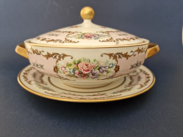 Dettagli del prodottoZuppiera e sottopiatto. Ceramica di Liminges. Design E. Burroughs.