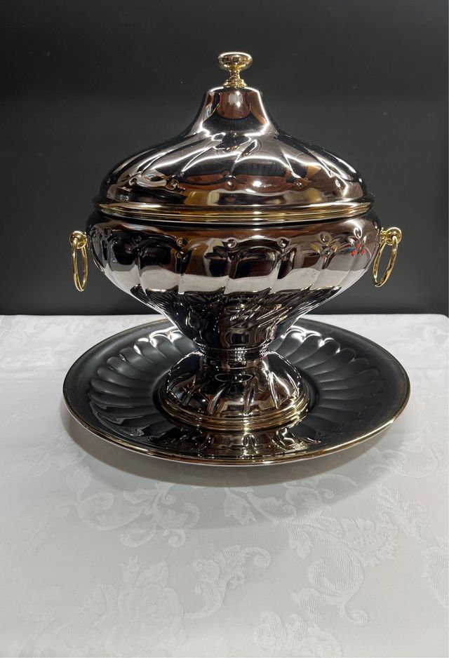 Zuppiera rifiniture calvanicamente dorate 24 KT