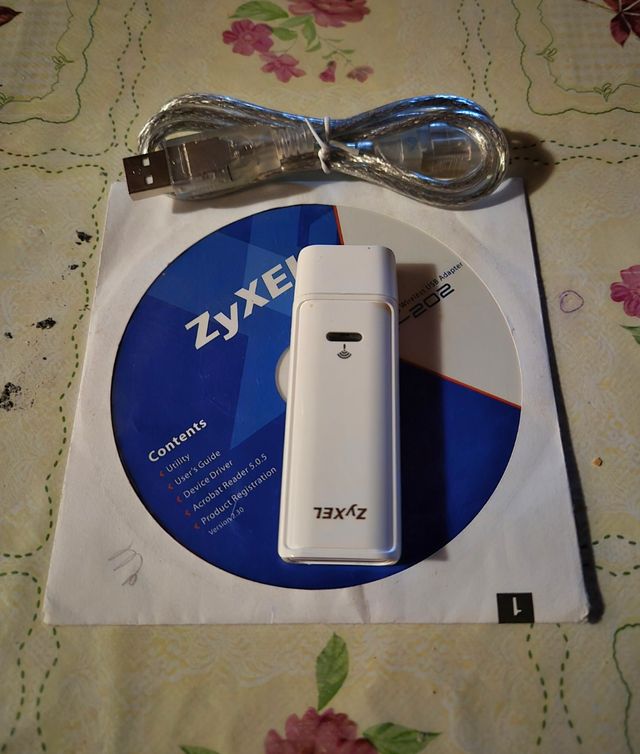 Dettagli del prodottoAdattatore Wi-Fi USB ZyXEL G-202 in buone condizioni. Include cavo USB e CD.