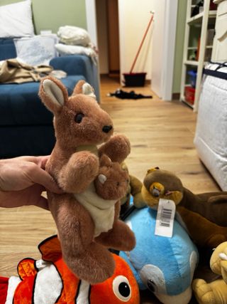 Simpatico peluche di un canguro con il suo piccolo. - Morbido materiale di peluche. - Dettagli curati.