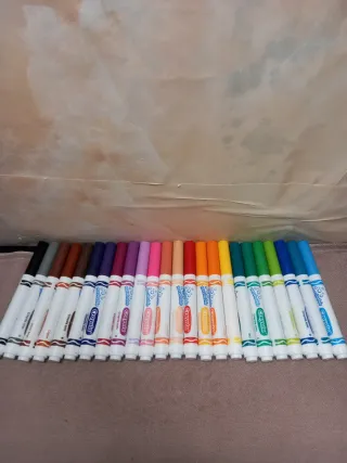 Set di pennarelli Crayola con una vasta gamma di colori vivaci. - Pennarelli lavabili. - Punta fine per dettagli precisi. - Colori inclusi: nero, grigio, marrone, blu scuro, viola, rosa, arancione, giallo, verde, blu. - Ideali per disegnare e colorare.