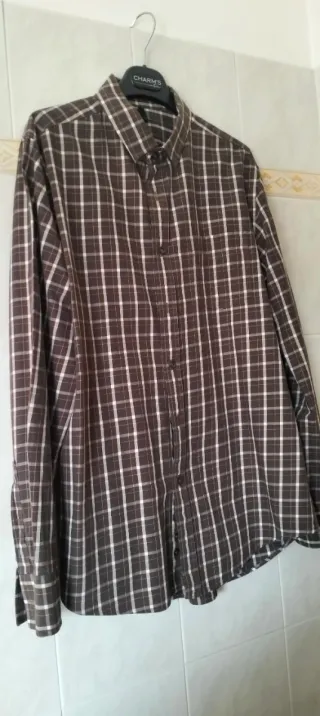 Camicia da uomo a maniche lunghe con un classico motivo a quadri. - Fantasia a quadri marrone e bianca. - Collo classico. - Chiusura con bottoni. - Taschino sul petto.