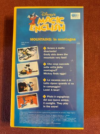 Prodotto Nuovo sigillato VHS Disney's Magic English numero 24, dedicato al tema Mountains: In montagna. - Copertina con illustrazioni Disney. - Titolo in inglese e italiano.