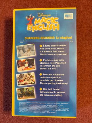 Prodotto Nuovo sigillato VHS Disney Magic English, numero 25, dedicato alle stagioni. - Titolo: Changing Seasons: Le stagioni - Contiene episodi educativi per imparare l'inglese con i personaggi Disney.