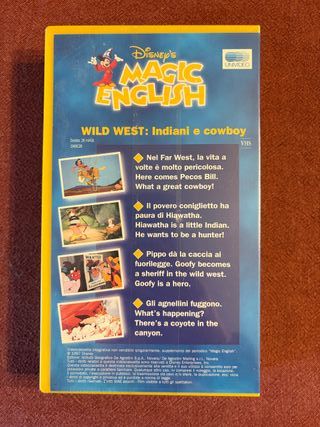 Prodotto Nuovo sigillato VHS Disney Magic English numero 28, con episodio Wild West: Indiani e cowboy. - Copertina con Topolino e Goofy. - Edizione DeAgostini Junior.