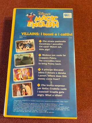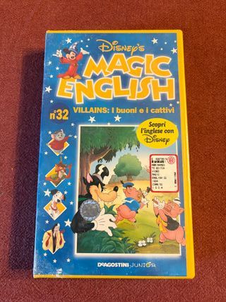 Prodotto Nuovo sigillato VHS Disney Magic English numero 32, dedicato ai Villains: I buoni e i cattivi. - Copertina con Topolino e altri personaggi Disney. - Include Scopri l'inglese con Disney. - Edizione DeAgostini Junior.