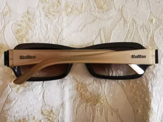Occhiali da sole Max Mara con montatura nera e lenti sfumate marroni. - Montatura in acetato nero. - Lenti con protezione UV. - Design squadrato moderno.