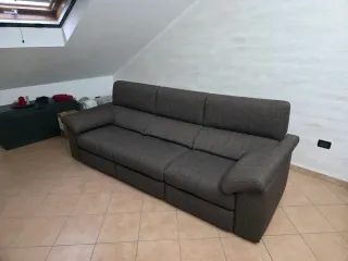 Divano perfetto in ogni sua parte usato pochissimo di dimensioni importanti, tutto in tessuto sfoderabile - Disegno moderno ed elegante - ottimo con le 3 chaise longue separate e testate in 4 posizioni - pouf capiente misure 100×60×40