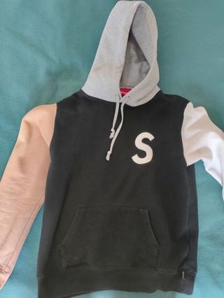 Felpa S con design colorblock e logo S sul davanti. Cappuccio con laccetti. - Maniche in colori diversi. - Tasca a marsupio.