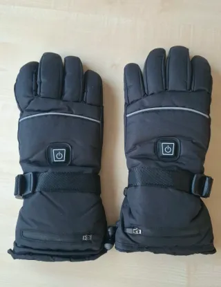Coppia di guanti riscaldanti neri. Impermeabili. - Design imbottito. - Chiusura con velcro regolabile. - Zip sul polsino.