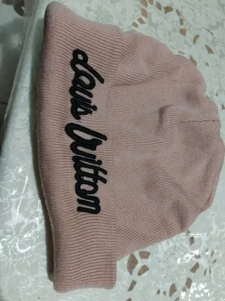 Cappello in maglia con logo. - Colore rosa. - Logo Louis Vuitton ricamato in nero.