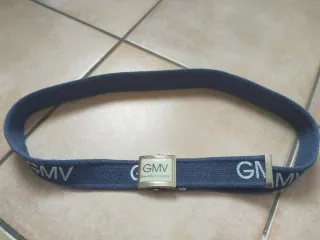 Cintura con fibbia metallica e logo GMV. Lunghezza 114 cm - Fibbia color argento. - Tessuto della cintura blu.