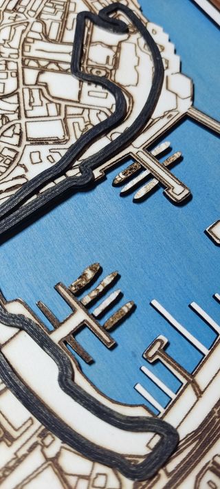 Riproduzione circuito Formula 1 Montecarlo, taglio al laser, realizzazione artigianale.