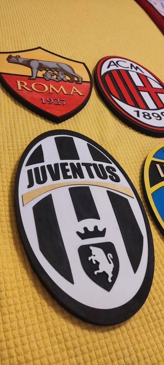 Crest squadre di calcio, la vendita è relativa ad un solo articolo, scegliete la vostra squadra del cuore, realizzati artigianalmente, dimensioni : LxH Roma 19 x 24.5 cm, Juve Milan : 17.5 x 28 cm, Inter 19 x 25 cm