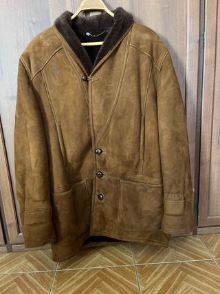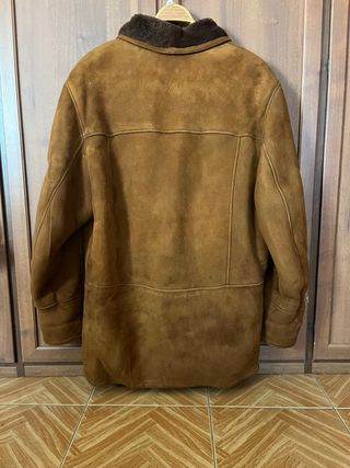 Elegante montone in pelle, perfetto per le giornate più fredde. È un capo vintage, acquistato intorno al 1987/1988 - Materiale: Pelle scamosciata - Fodera interna in vers pelliccia - Chiusura con bottoni - Due frontali applicate, una tasca interna con zip - Collo in pelliccia Vi sono evidenti segni di usura quali screpolature e scolorimenti in alcuni punti (indicati nelle foto)