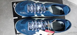 Scarpe Onitsuka Tiger in tonalità blu con dettagli bianchi. - Tomaia in pelle scamosciata traforata. - Lacci bicolore. - Logo sul tallone e sui lati.