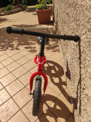 Bicicletta rossa senza pedali per bambini, ideale per imparare a stare in equilibrio. - Telaio in metallo resistente. - Manubrio regolabile. - Sella imbottita.