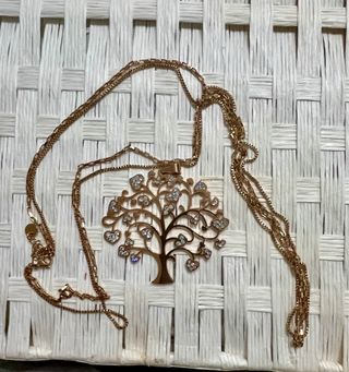 Elegante collana con pendente a forma di albero della vita, impreziosito da piccoli cuori. - Design dettagliato dell'albero. - Cuori decorativi integrati tra i rami. - Catena sottile e luminosa.