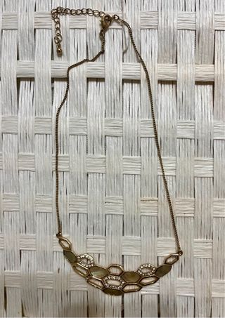 Collana statement con un design geometrico e moderno. - Finitura dorata. - Inserti in madreperla. - Dettagli con strass scintillanti.
