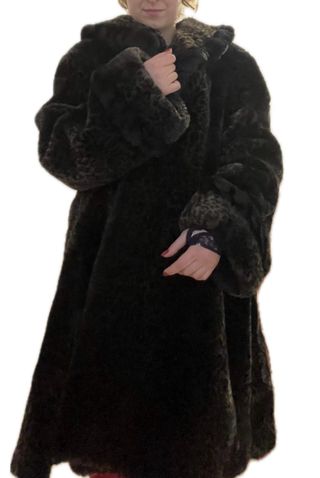 Elegante pelliccia di marmotta, capo vintage. Fu fatta a mano e su misura da un pellicciaio (Gianforte) nella zona de L’Aquila, Abruzzo, più o meno a cavallo tra il 1985 e il 1987. Vestibilità 48, lunghezza 89cm. Due tasche, 2 bottoni a Clips (come in foto) , interno rivestito.