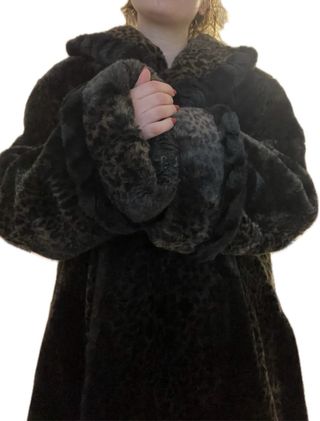 Elegante pelliccia sintetica nera, perfetta per aggiungere un tocco di stile. - Collo con fantasia animalier. - Lunghezza che arriva alle caviglie.