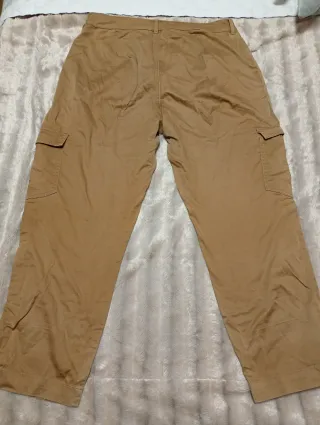 Pantaloni cargo da donna in un versatile colore beige. - Tasche cargo laterali. - Chiusura con bottone e zip. - Vita con passanti per cintura.