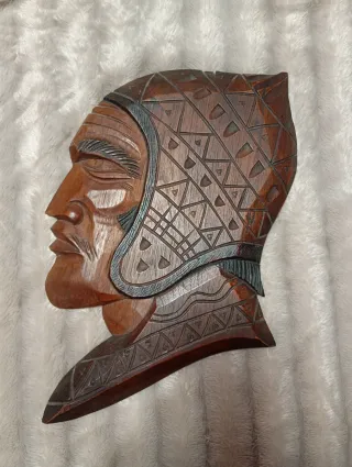 Maschera decorativa in legno, realizzata a mano con cura. - Intagli dettagliati. - Design tribale. - Materiale: Legno.